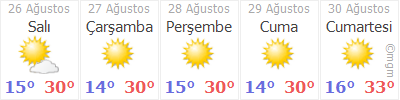 Hava durumu bilgileri, bugünkü ve 15 günlük hava durumu, meteoroloji ve hava şartları hakkında en son haberler için havadurumu.com.tr'i takip edin!